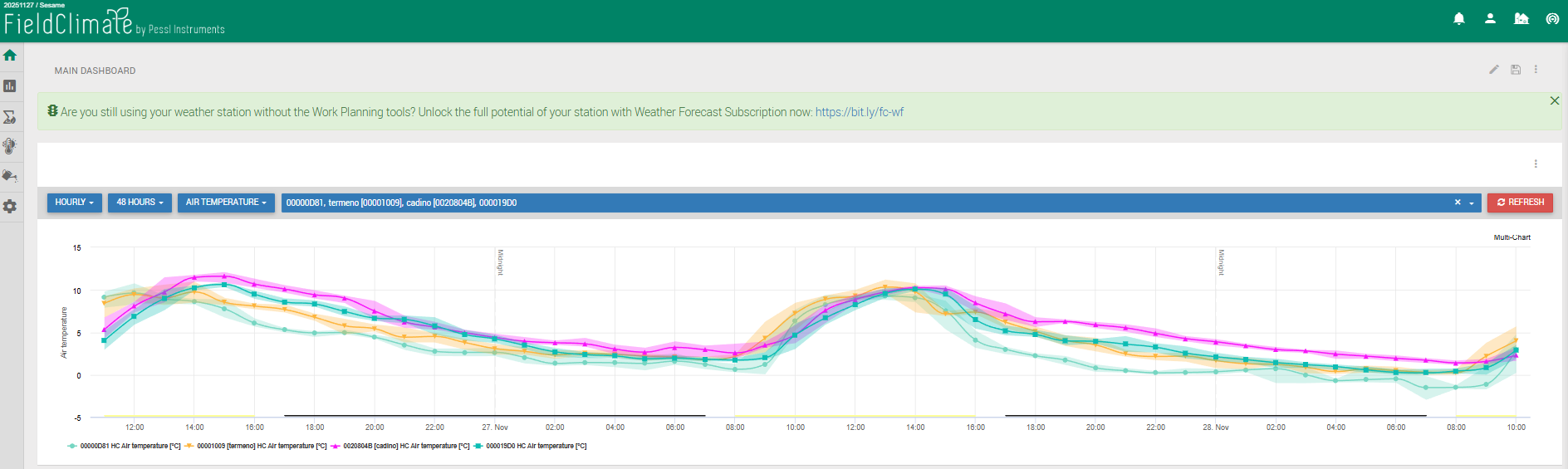 Obliczenia Delta T wymagają zainstalowania na METOS czujnika higroskopijnego (temperatura powietrza i wilgotność względna).® stacja: dane mogą być przeglądane na FieldClimate w postaci wykresów i tabel o szczegółowej rozdzielczości.
